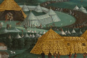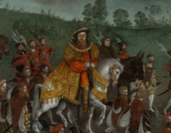 In fact I first came across the title 'cloth of gold' in relation to Henry VIII and the grand tournament held 300 years earlier (1520) to celebrate peace between Britain and France. Above are two details from a painting of the same name recording the event. To read more:https://blog.nationalarchives.gov.uk/the-field-of-the-cloth-of-gold-1520/ and