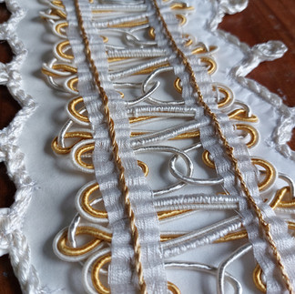 The last decision was regarding a suitable necklace. Which was sorted out when I cam across this piece in The Royal Collection and the House of Embroidered Paper volunteers were able to start quilling.