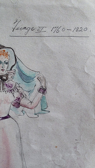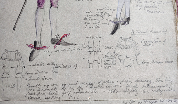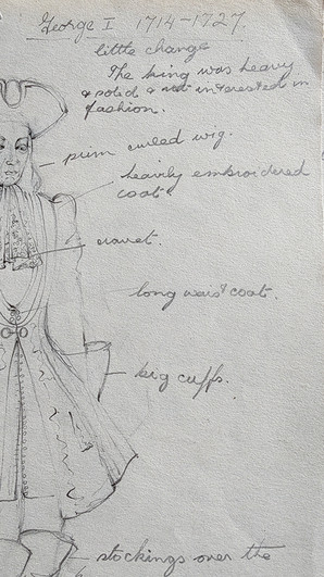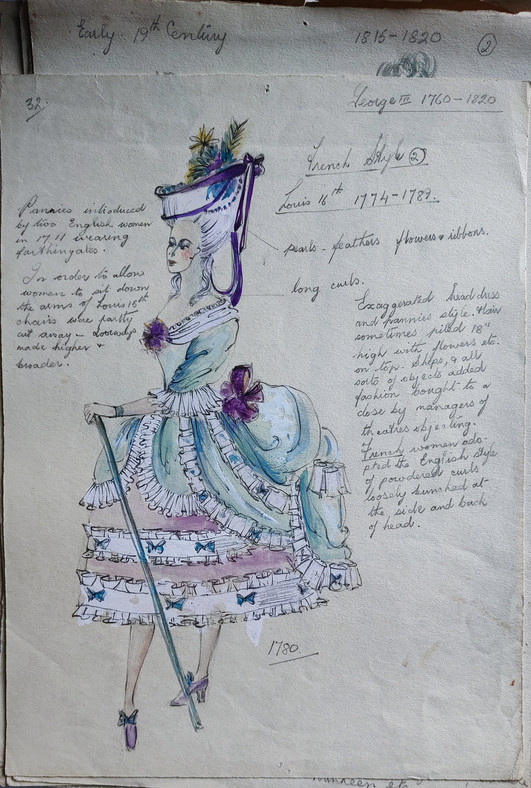 She had drawn example garments from the 1400's to the 1900's. Probably doing so in the 1940's when she was around 18-20 years old (she was born on 22nd December1923).