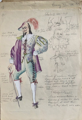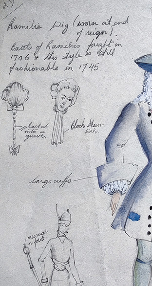 Unfortunately we know little about her life as an art student. It's possible that Ruskin Spear, one of the foremost British painters of that era was her teacher. Obviously she was interested in fashion before she began modelling. Where she was seeing the original garments she was illustrating we don't know. Probably these aren't her original designs, it looks more as if she were trying to document notable aspects of fashion as a record for herself. Thereby illustrating the major changes as they occurred across the centuries of fashion history. It's a useful record for me anyway. Of course my work is also built around more general aspects of social and national history. I seek to weave the stories of real individuals from the past into the garments I design. I nod toward the achievements, thoughts, feelings, aspirations, talents or simple ordinariness of specific individuals (living or dead) in the collections I make. So it seemed rather magical that here, in the orbit of my own family I should find a woman whose illustrations and style might at least help me build a blog post showing a unique set of fashion illustrations, and thereby explore a little further this singular preoccupation.