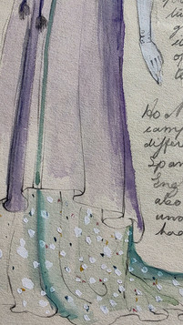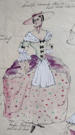 I didn't know her well, she seemed immensely tall and elegant and proper to me, when I was a little girl; married as she was by then to my grandfather Jimmy Wilson (who had a small room attached to the sitting room with shelves all over the walls covered in bottles, this was the bar, he did like socialising!). That she might have shared my interest in historic fashion came as a great (as in, welcome) surprise. Wouldn't it be wonderful if we knew ahead of time what we would later wish we'd asked our relatives. If only I could have known to ask her all about these drawings and her time at art college, whilst we walked on this planet together, familial as we were. For me the work of working out how best to create illustrations of my garment designs continues but maybe I will integrate something of her practise into me own.